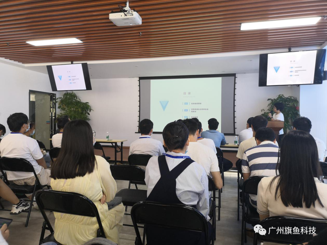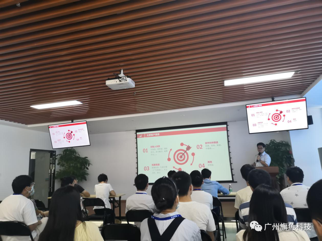 市场部负责人张勇向大家汇报了目前旗鱼科技的销售情况,对下半年的工作提出了新的目标。